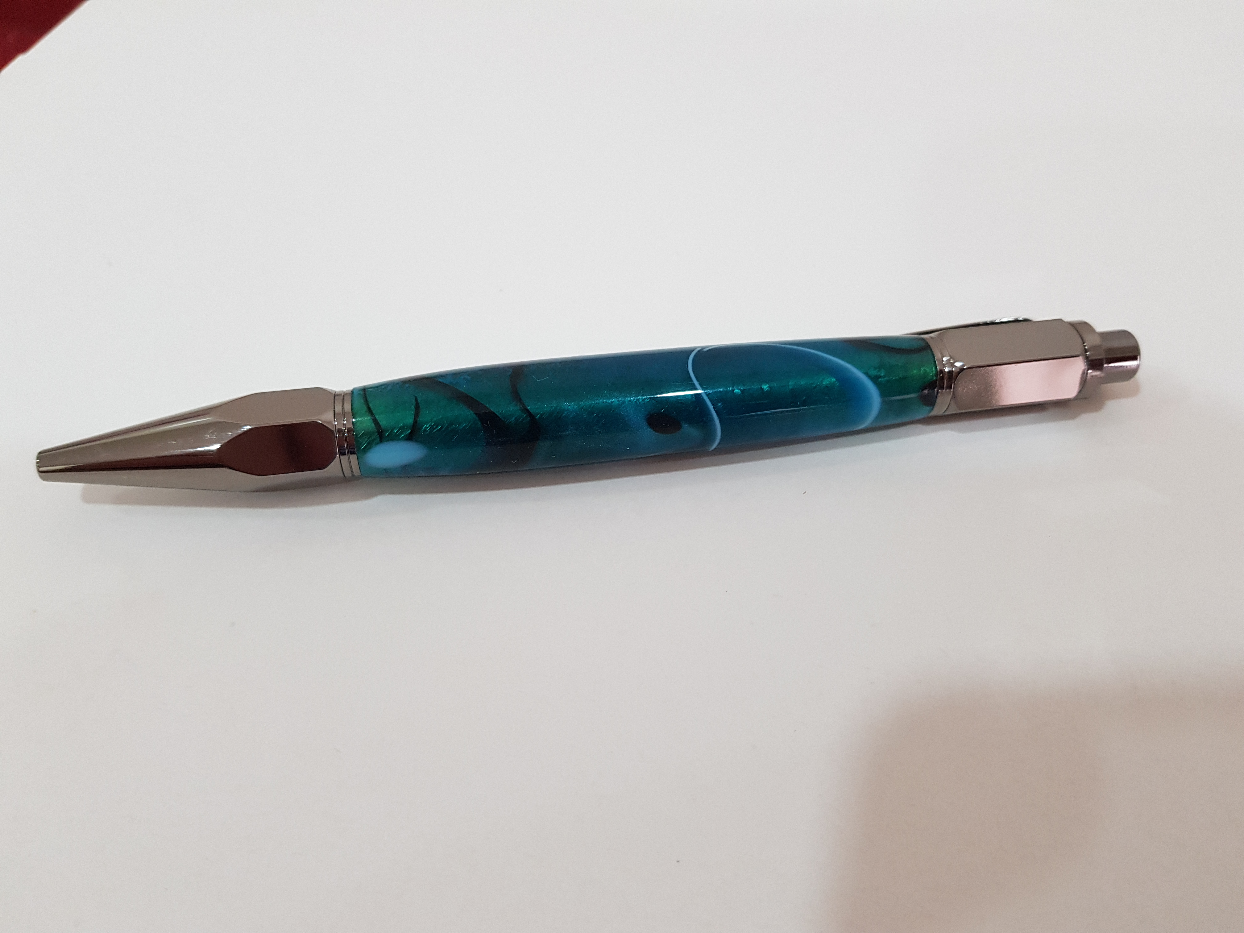 The Sierra pen is one of the most popular to be made and sold by Turning Corners Pen Studio. This time however, I have used acrylic instead of wood but, none the less, it has turned out quite well. It comes with a black, Parker refil cartridge which is a guarantee that it will not only look good but perform well.